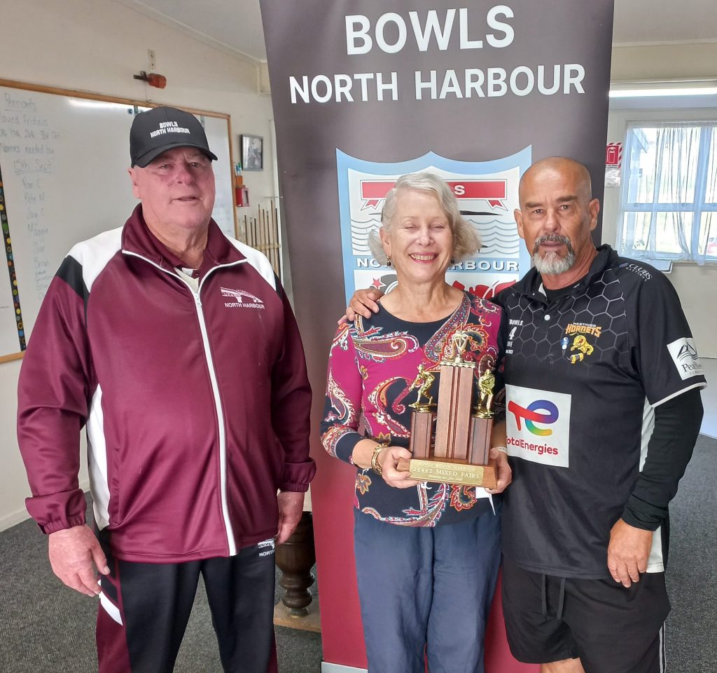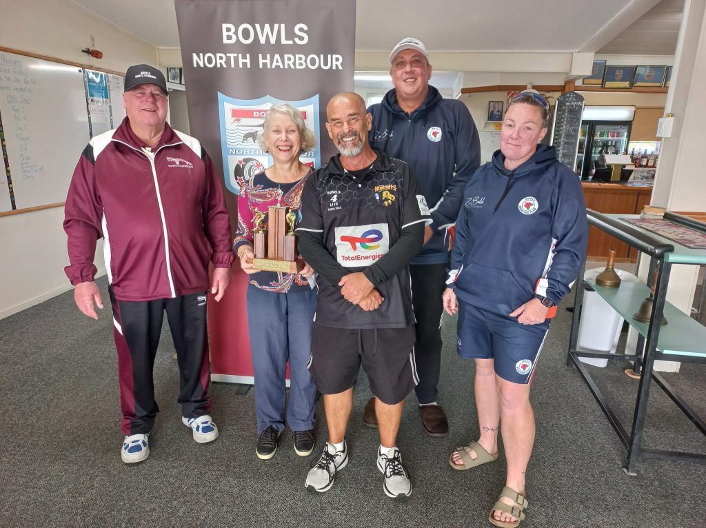 Two of North Harbour’s most successful bowlers of recent years, David Eades, now with Browns Bay, and Theresa Rogers, of Mairangi Bay, won at the weekend the centre’s first championship title for the 2025-26 season. In the final of the mixed pairs 2-4-2 championship at Helensville, after bowlers had to brave brutal conditions over both Saturday and Sunday, they beat Manly’s Shaun Goldsbury and Skye Renes 13-10. In so doing Eades collected the first bar to his gold star, joining Theresa who in a comparatively short bowls career has already claimed that distinction.